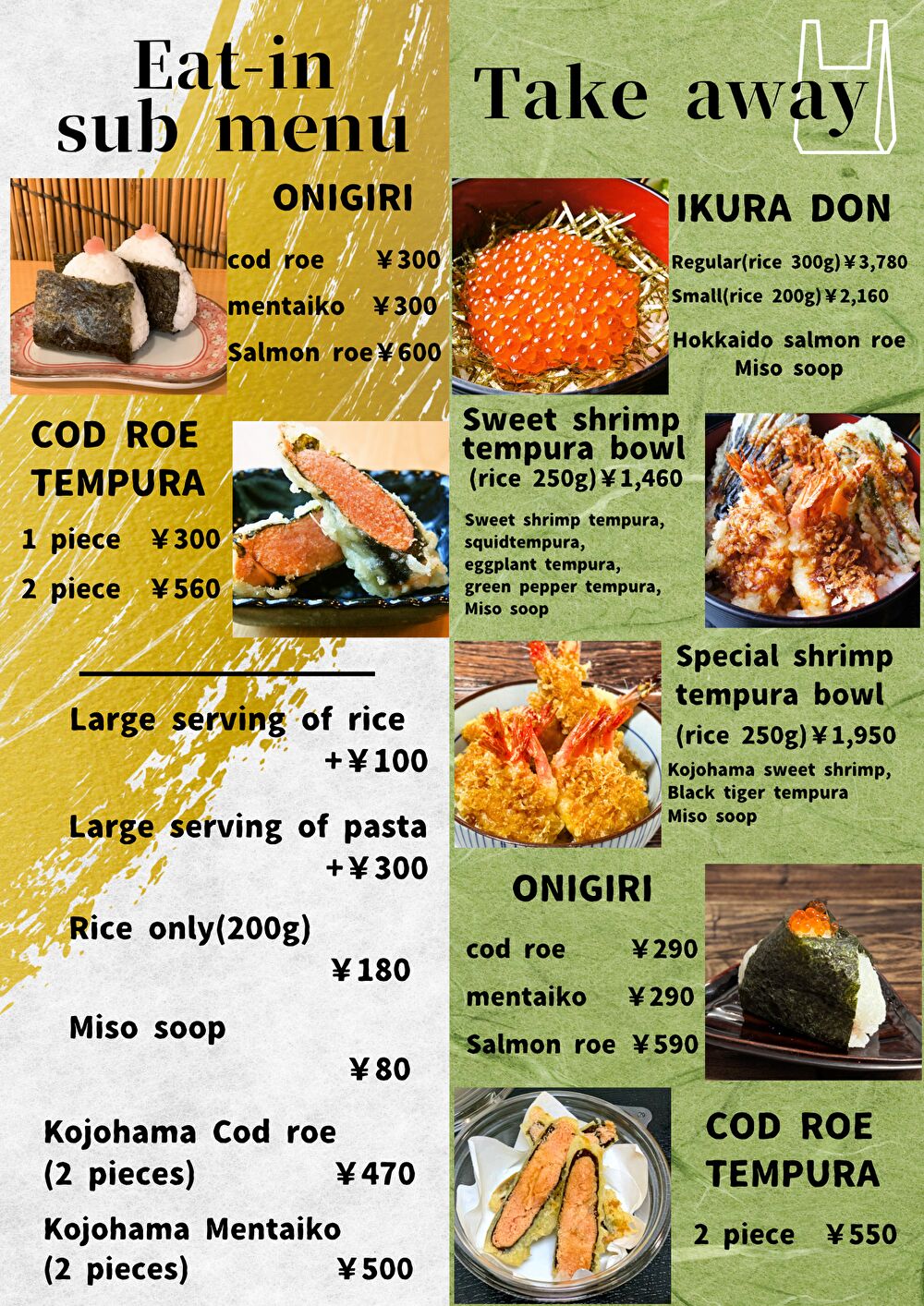 弊社製のたらこを使用した丼を中心に、
